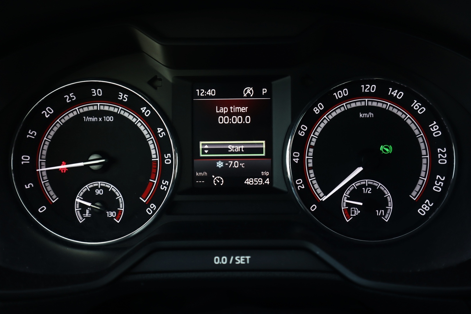 Ajotietokone, jossa kolme muistia. Toiminnot: kellonaika, ulkolämpötila, hetkellinen kulutus, keskikulutus, ajettu matka, matkan kestoaika, keskinopeus, ajomatka jäljellä olevalla tankillisella ja huollon tarpeen näyttö